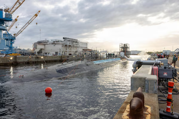 Norfolk Shipyard Undocks Submarine USS John Warner